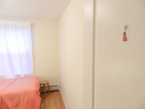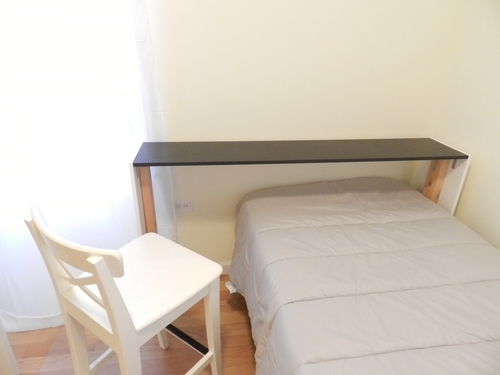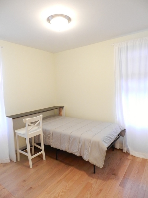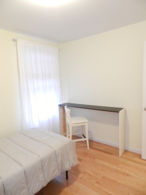 ・Full-size bed, desk, chair, trash can.